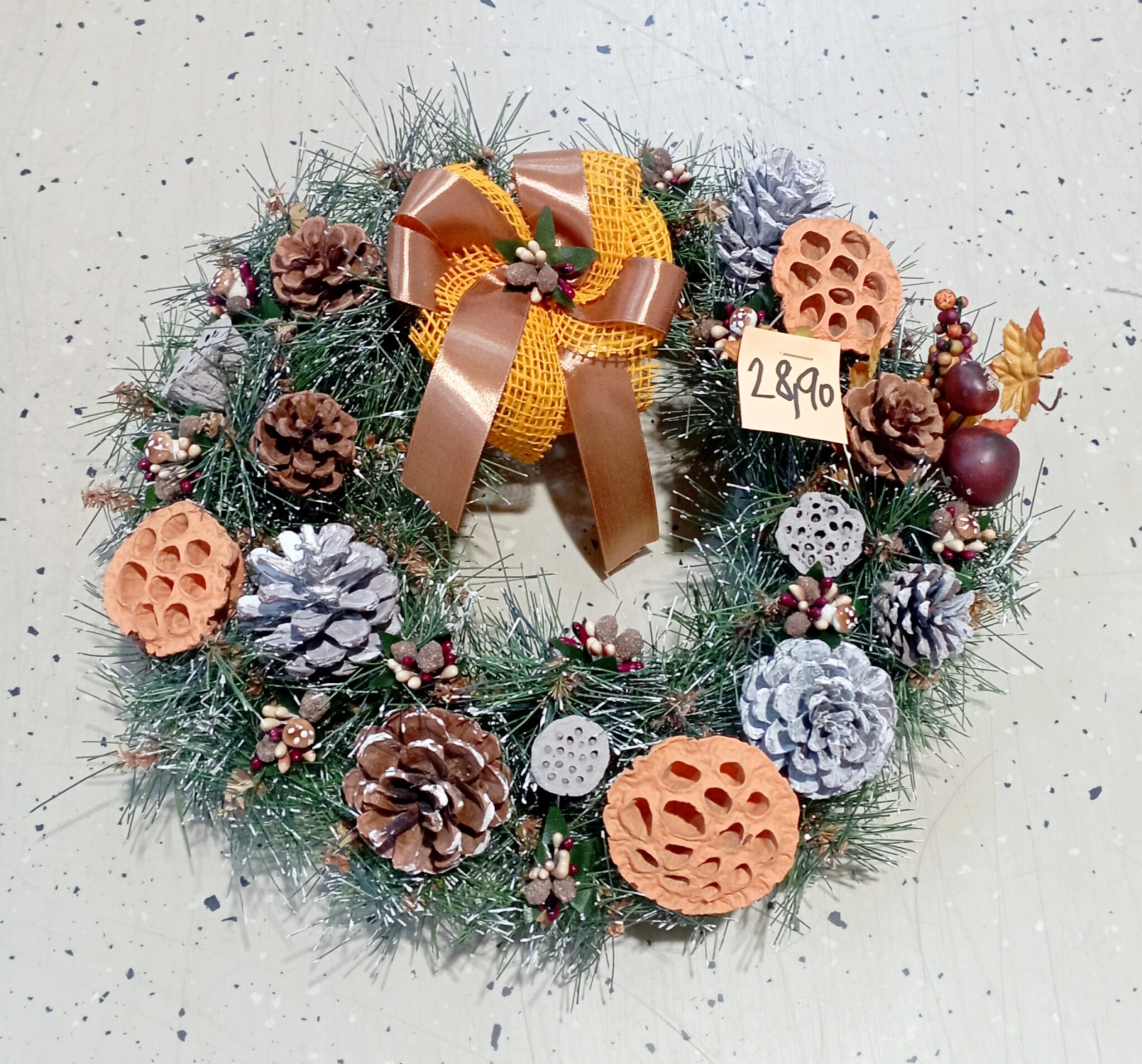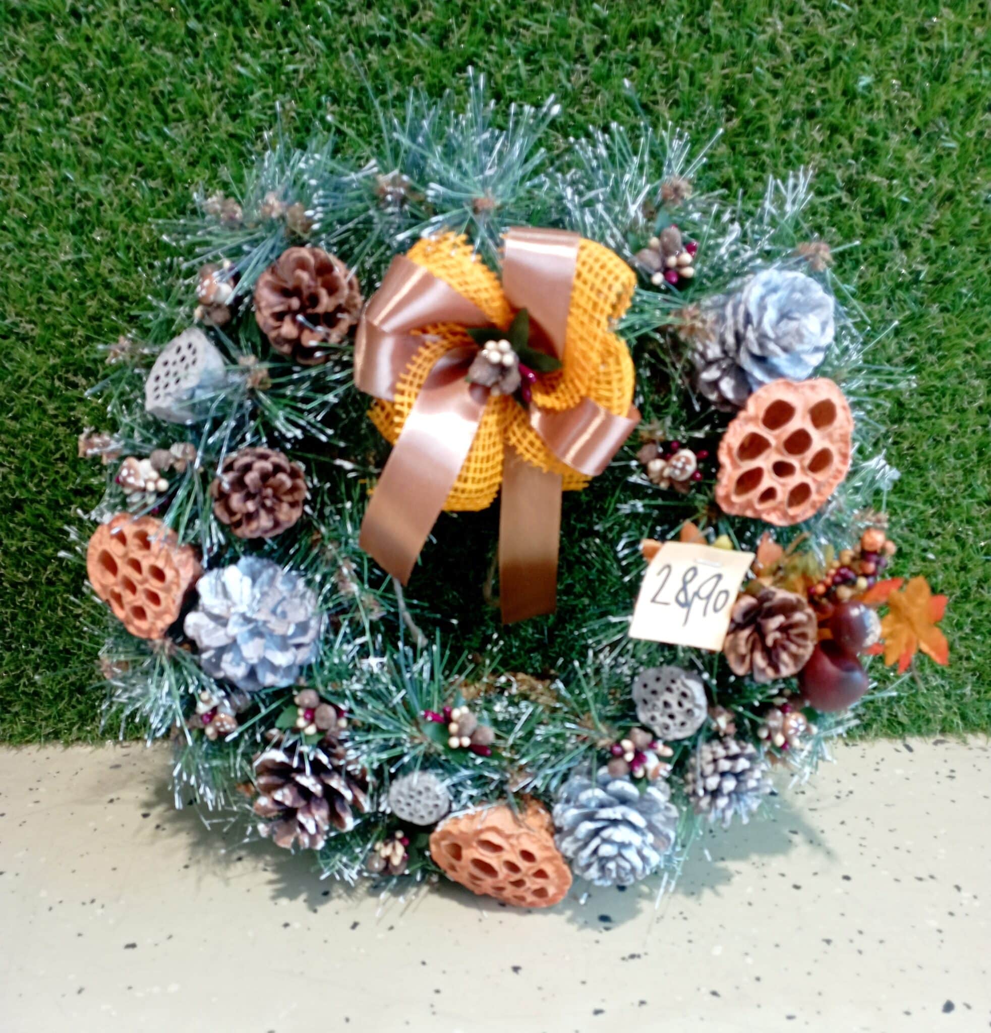 Dekorácia Čečinový veniec so šiškami a sušinou oranžový, na zavesenie