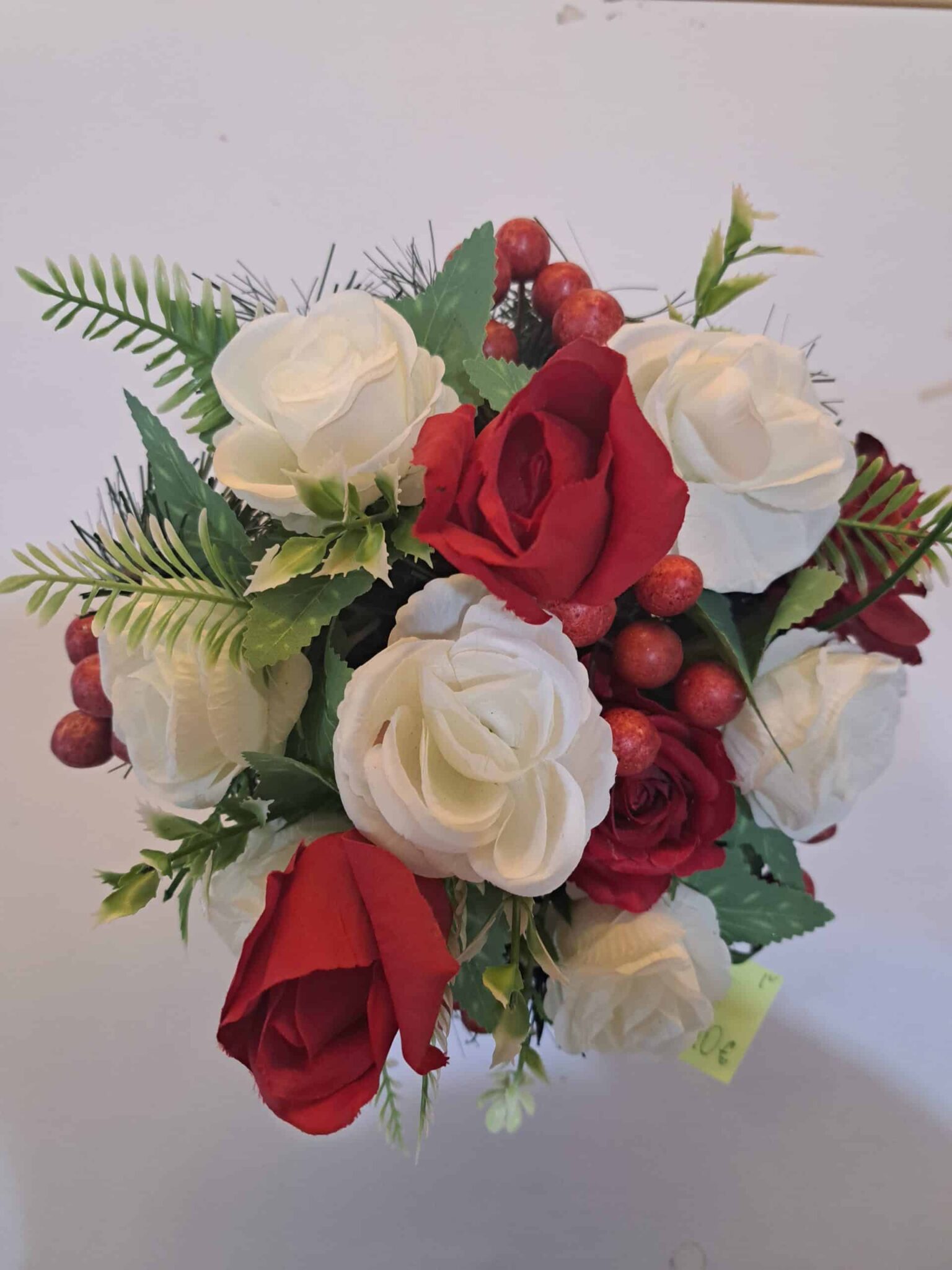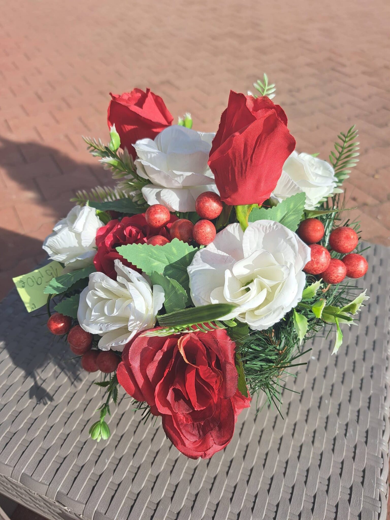 Ikebana na hrob okrúhla červeno biela