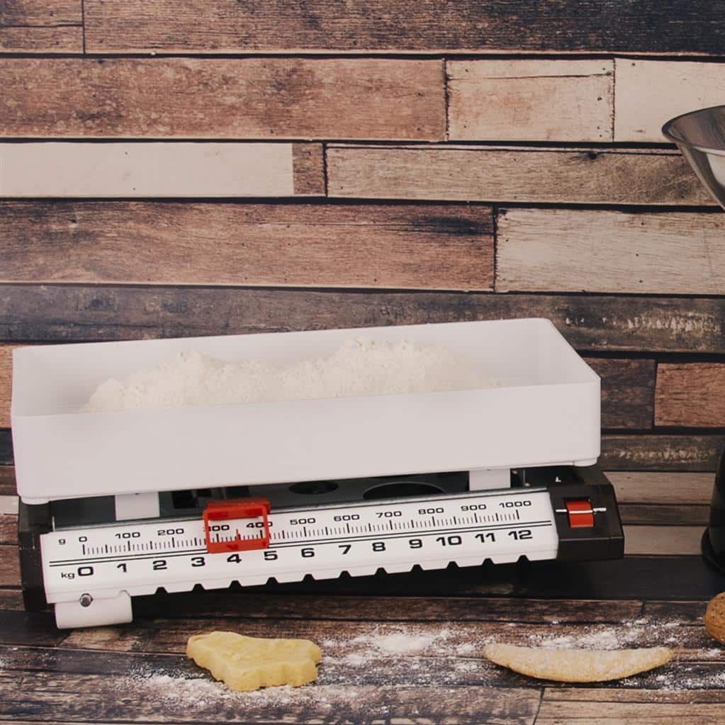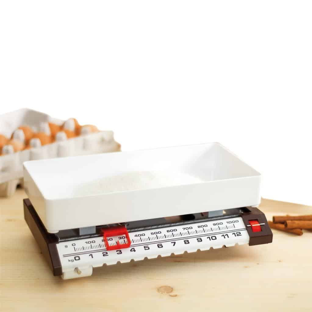 Mechanická kuchynská váha s plastovou odnímateľnou miskou. Pri vážení väčších objemov môžete misku nahradiť inou, väčšou nádobou. Aretácie. Materiál: kov, plast.Rozmery: 29x18x10 cm, hĺbka misky 3 cm.