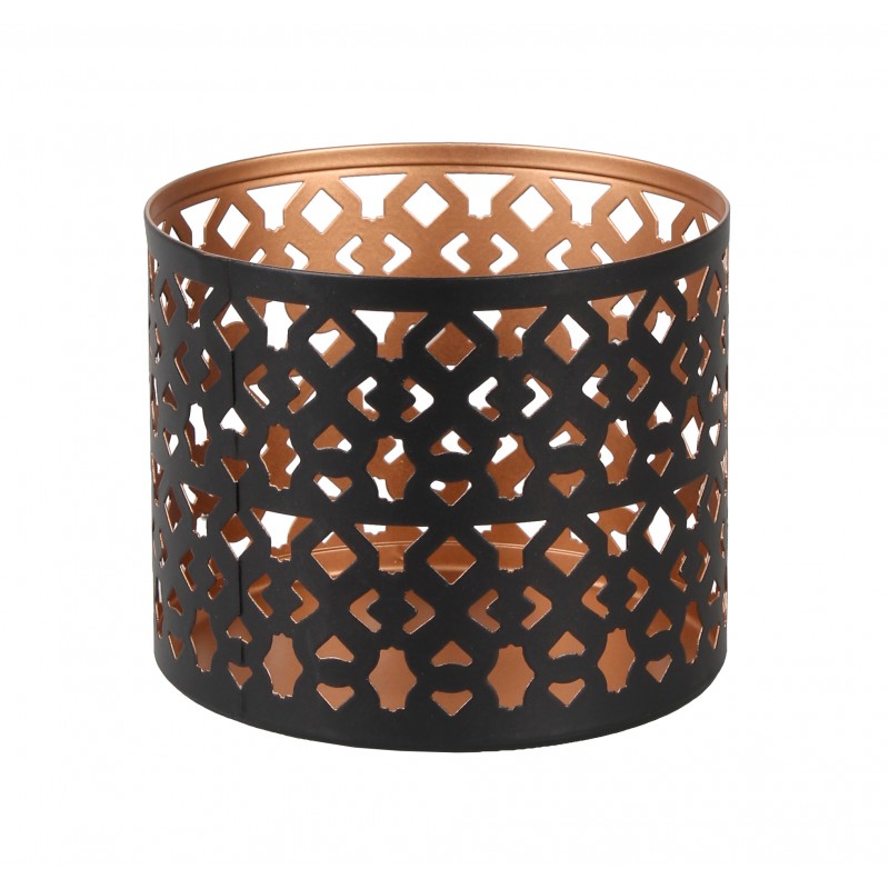 Vlastnosti produktu: vyrobené z kovu, prelamované, farba: odtiene čiernej a medenej, inšpirovaný orientálnym štýlom, na sviečku alebo čajovú sviečku