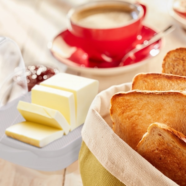 Dóza na maslo na uloženie masla v chladničke je vhodná aj na servírovanie pri raňajkách. Materiál: plast. Rozmery: 15×10,2×6 cm.