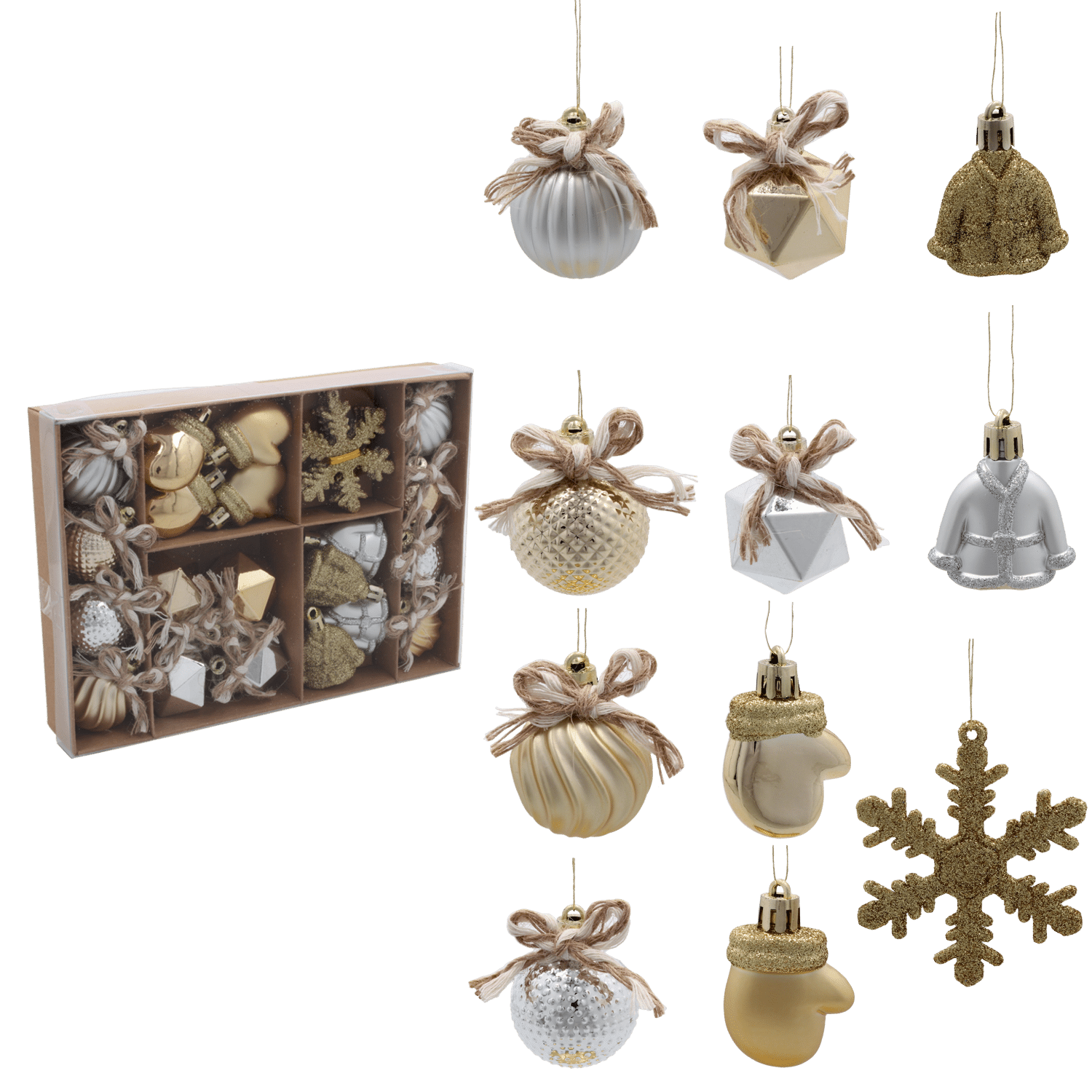 Doprajte svojmu vianočnému stromčeku harmonický a elegantný vzhľad so štýlovým mixom ozdôb v strieborno-zlatej farebnej kombinácii. Tento bohatý set obsahuje 24 kusov rôznych ozdôb, ktoré spoločne vytvárajú dokonalú sviatočnú atmosféru.