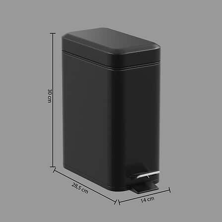Kôš je vybavený pedálovým mechanizmom, ktorý umožňuje jednoduché a hygienické otváranie bez dotyku rukami. Systém pomalého zatvárania zabezpečuje tiché a jemné uzatváranie veka, čím sa znižuje hlučnosť a predlžuje životnosť produktu. Vďaka elegantnému čiernemu povrchu a minimalistickému dizajnu sa kôš hodí do moderných interiérov.