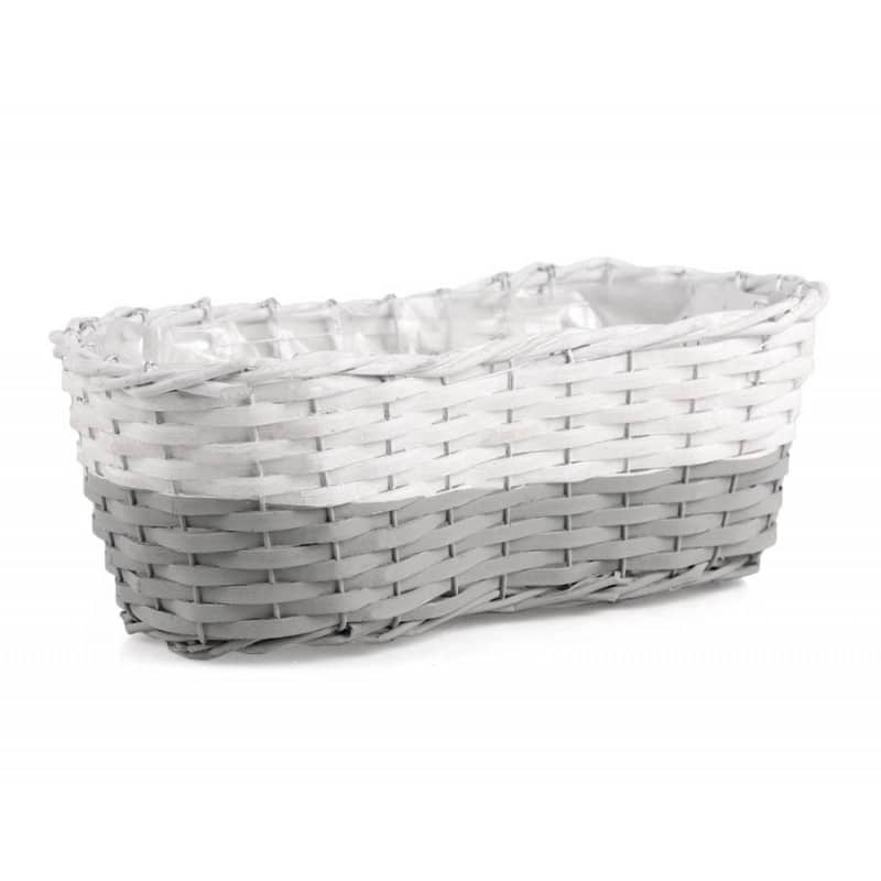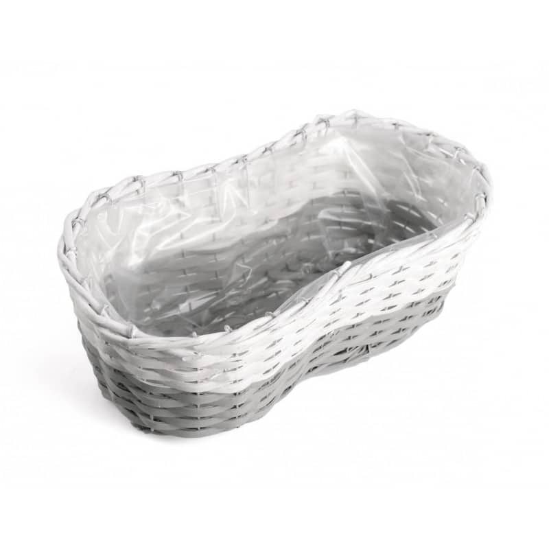 SIVO BIELY OVÁLNY PRÚTENÝ KOŠÍK S FÓLIOU NA KVETY