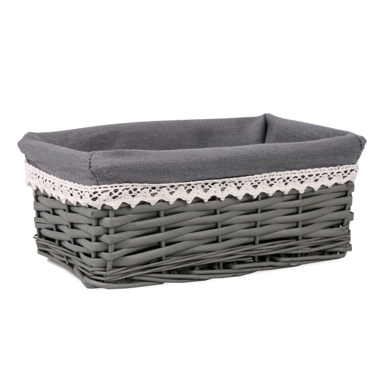 Sivý prútený košík s látkou je praktický a dekoratívny. Prútený košík využijete v kuchyni, obývačke, kúpeľni, šatni aj detskej izbe, ktorá je naozaj v každej miestnosti v dome – podľa vašej preferencie. Sivý košík nielen zorganizuje veci dennej potreby umiestnené v ňom, ale aj pekne ozdobí miesto, kde sa nachádza. Kombinácia sivého lakovaného prútia s hladkým materiálom dodáva košíku dobrý vzhľad ako v modernom interiéri, tak aj v tradičnejšom usporiadaní.