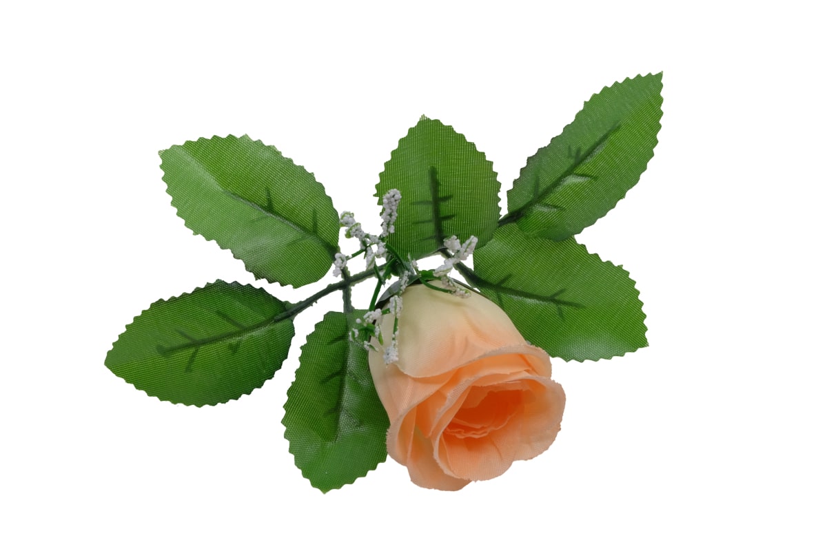 Ruža hlava bledooranžová s listami a drobnými bielymi kvietkami 12cm