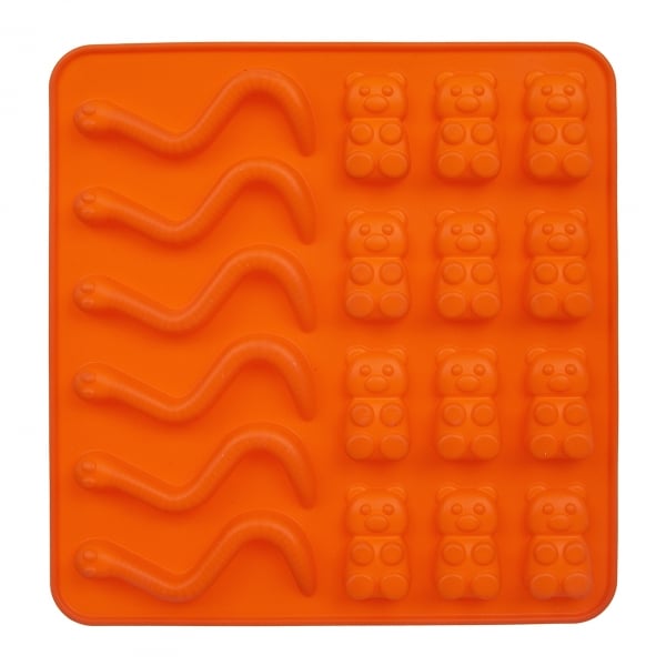V originálnej silikónovej forme oranžovej farby si doma jednoducho vyrobíte želatínové medvedíky alebo kyslé dážďovky, ktoré deti milujú.