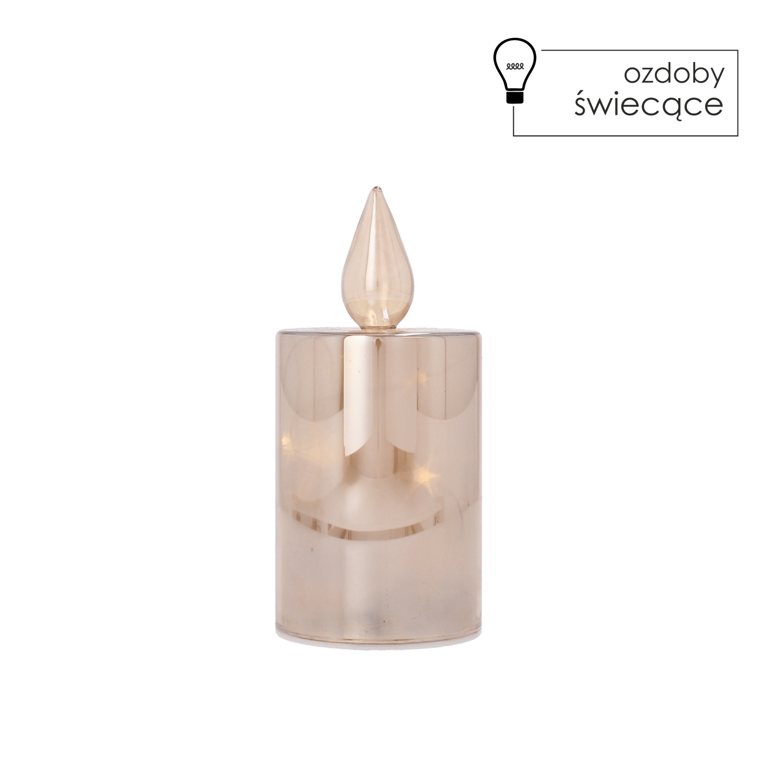 Táto elegantná sklenená LED sviečka v zlatej farbe je krásnym doplnkom do každého interiéru. Jemne priesvitné sklo s detailom hviezdičiek vytvára príjemnú a útulnú atmosféru vďaka teplému žltému svetlu. Sviečka je vysoká 15 cm a napájaná tromi AAA batériami (nie sú súčasťou balenia). Skvelo sa hodí na sviatočné obdobie, romantické večery alebo ako štýlová dekorácia po celý rok.
