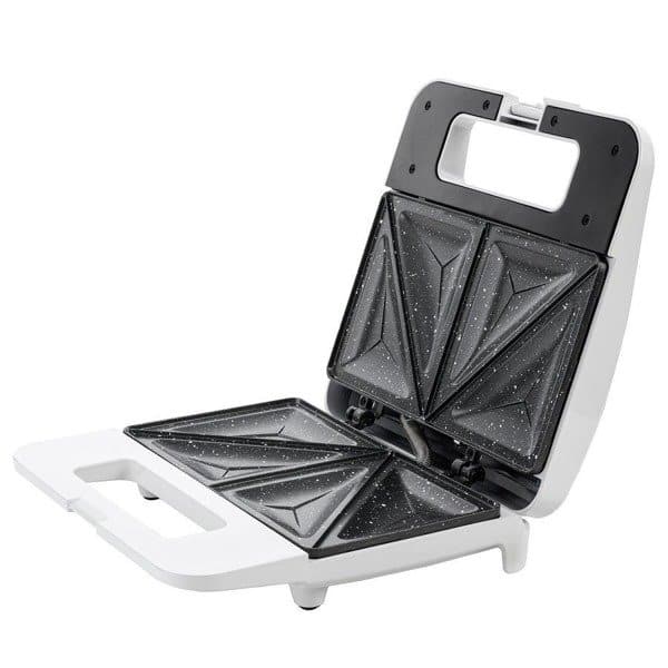 Produkt má výkon 750 W. Naraz vytvorí až 4 trojuholníkové sendviče. Nezohrievaná rukoväť ovplyvní vaše pohodlie a bezpečnosť pri používaní. Vo vnútri hriankovača sú keramické platne, ktoré zabraňujú prilepeniu sendvičov.